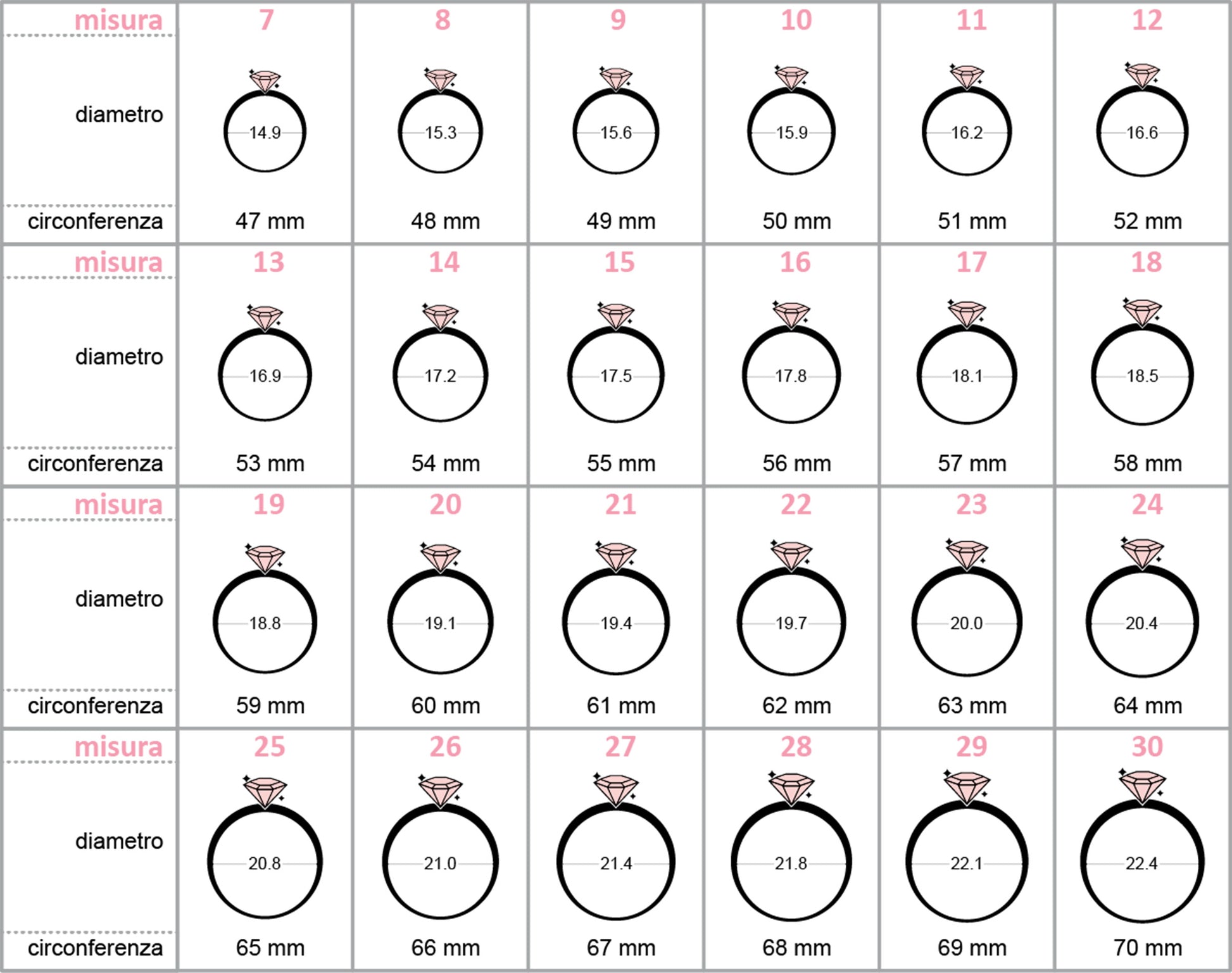 Anello su misura: fare riferimento all'ultima immagine per la tua misura!