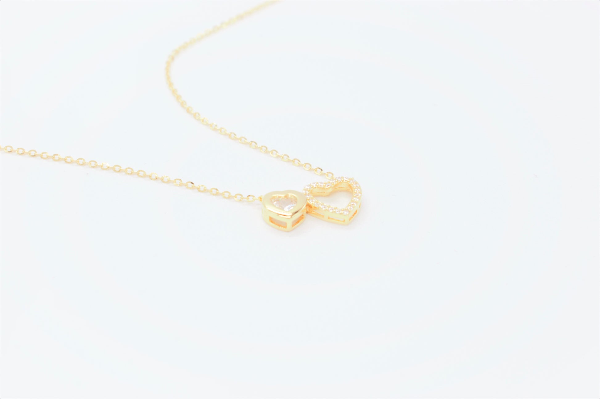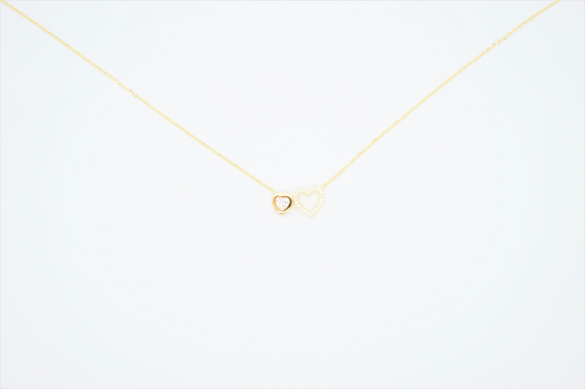 Questa raffinata collana da 45 cm in argento 925 placcato oro è impreziosita da un elegante pendente a doppio cuore, entrambi scintillanti grazie alla presenza di zirconi che ne esaltano la brillantezza.