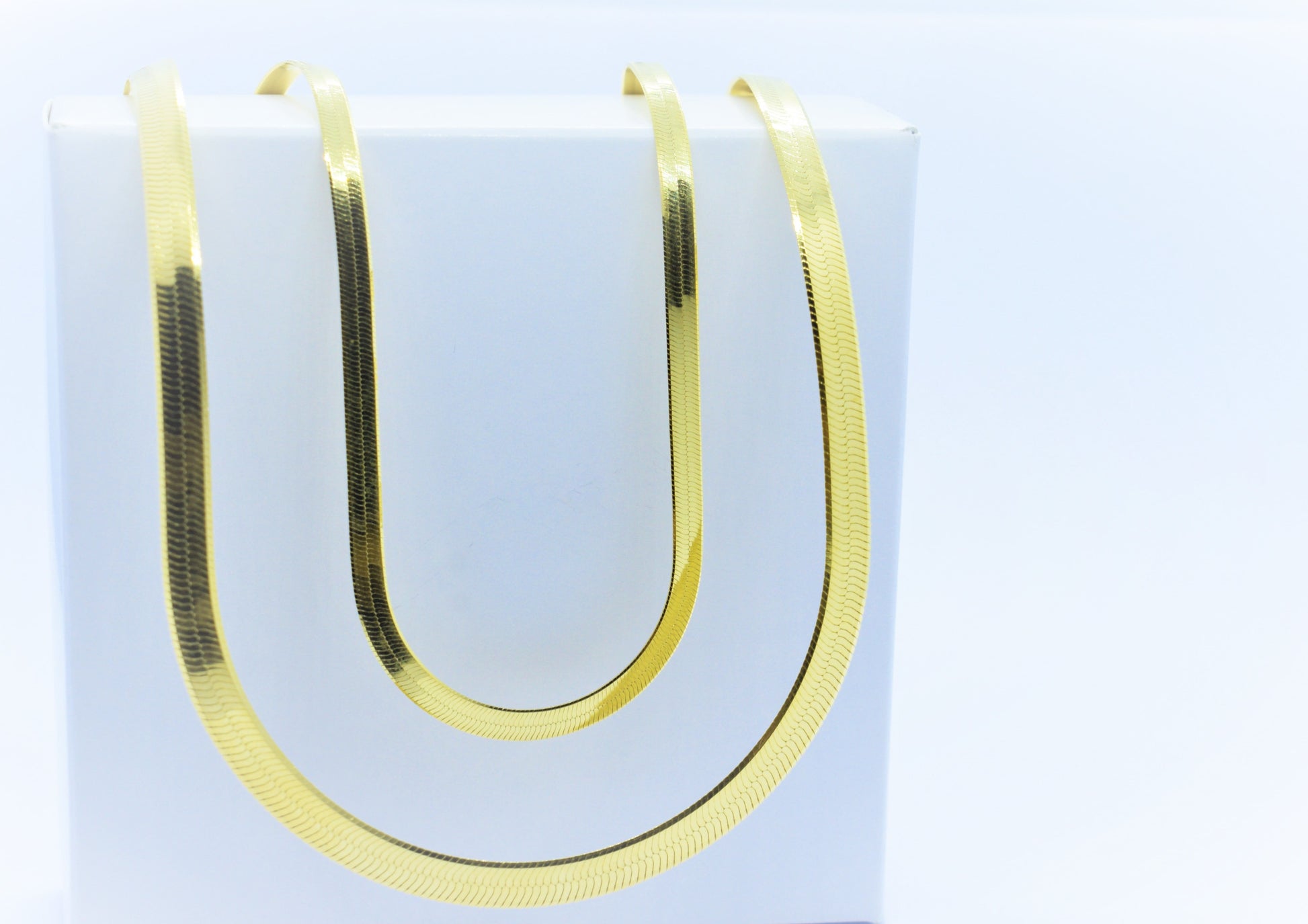 La collana piattina ha un design piatto e liscio, che lo rende semplice ed elegante.