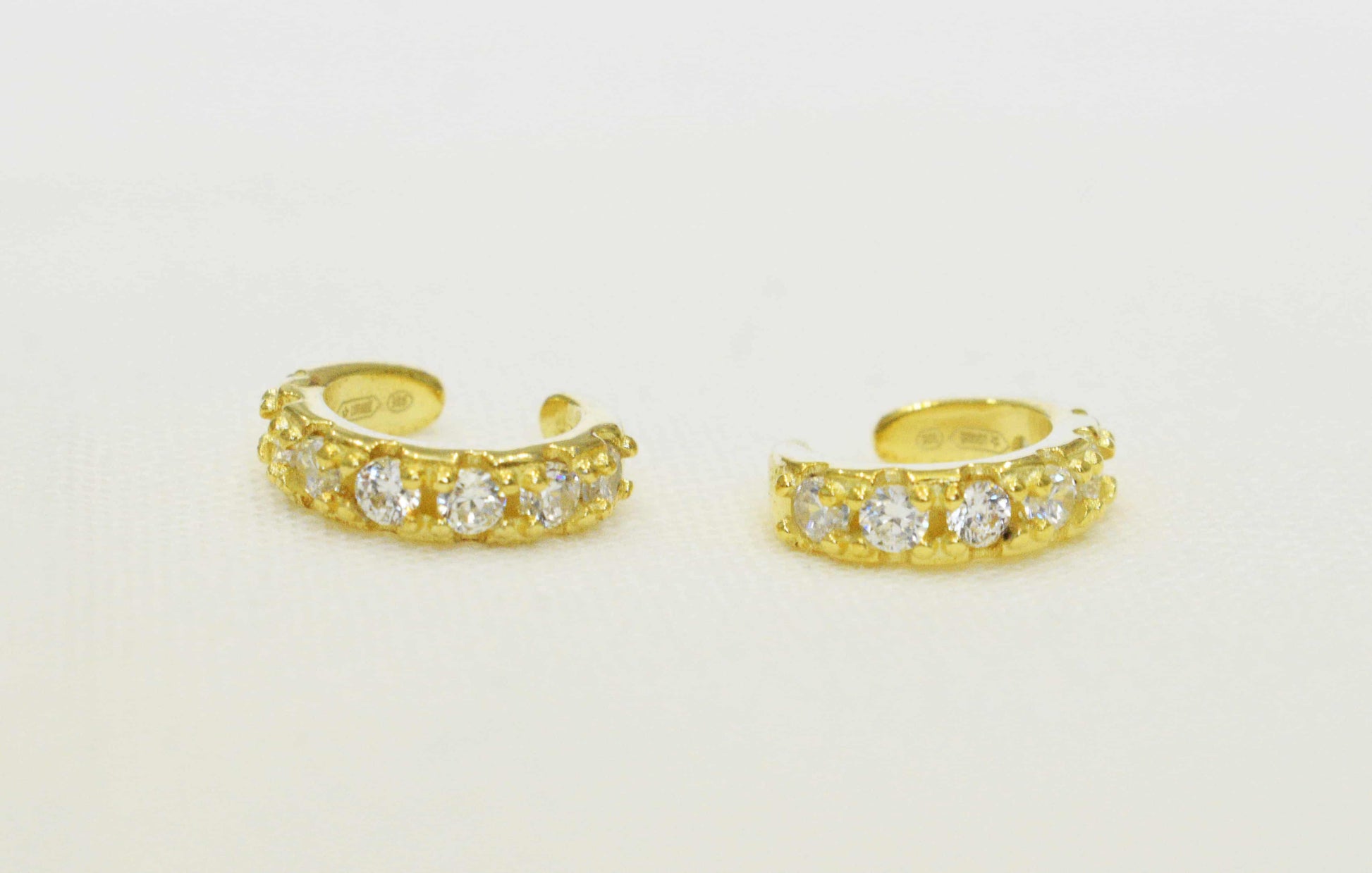 Ear cuff Biggold realizzato in argento 925 e placcato oro con brillanti zirconi grandi.