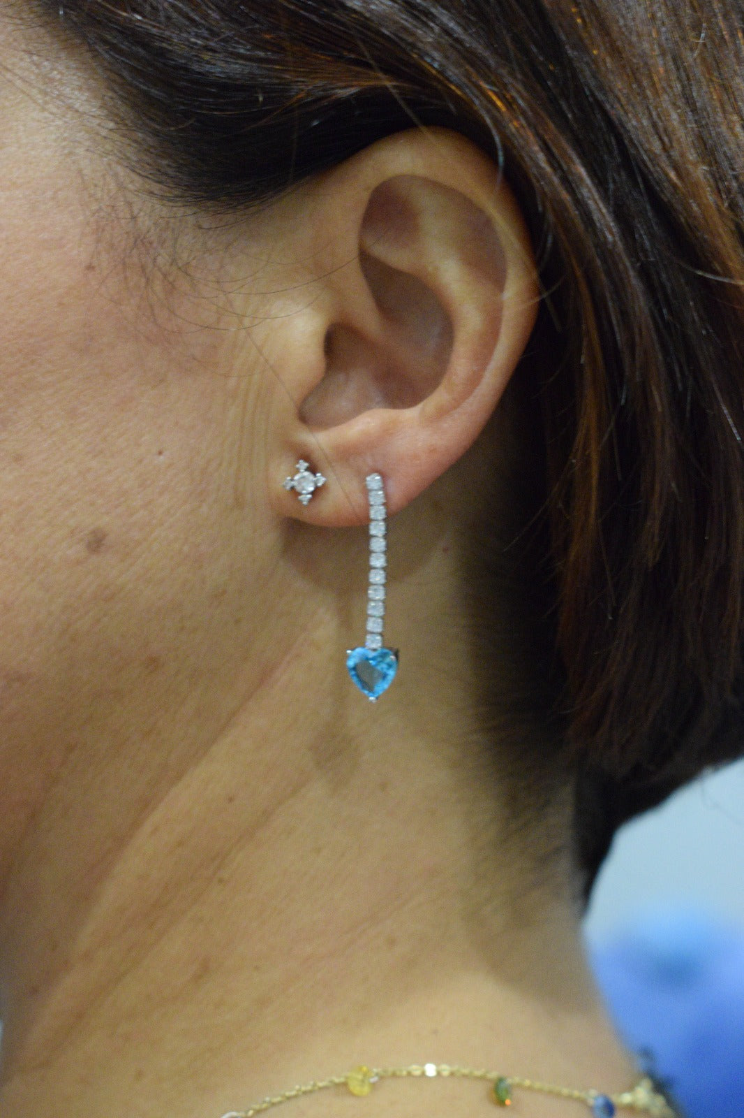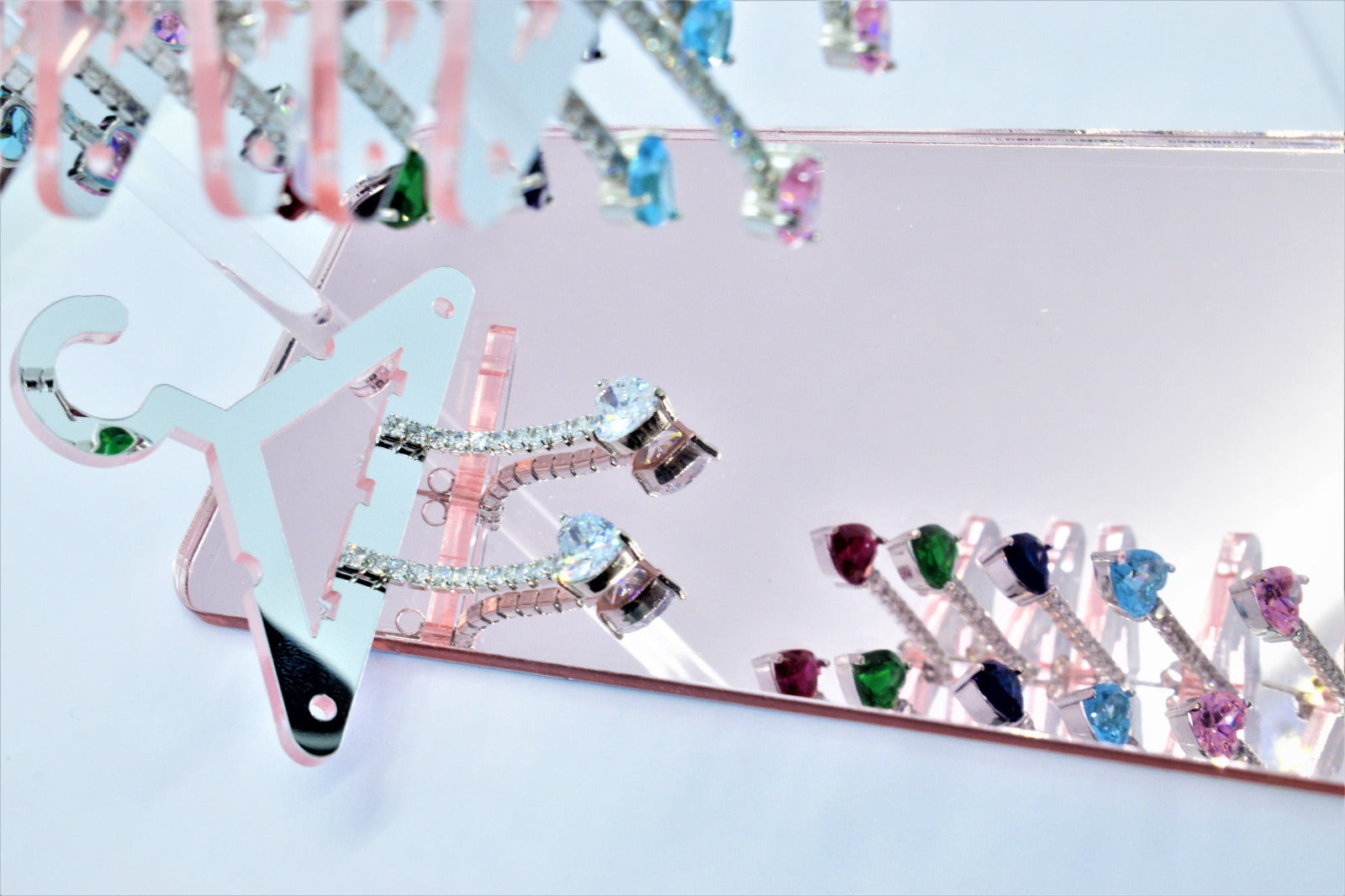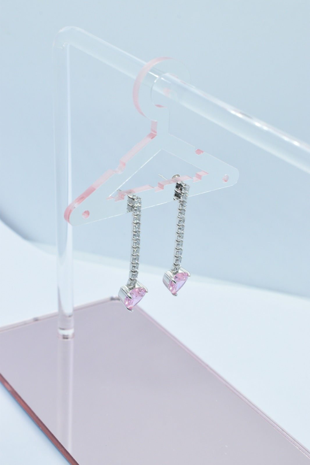 - Alla fine di ciascun orecchino pendente, troverai un zircone colorato a forma di cuore. Questo zircone colorato aggiunge un tocco di vivacità e romanticismo all'intero design. Può essere di un colore specifico, come il rosso per simboleggiare l'amore, o di qualsiasi altra tonalità che si adatti al tuo gusto personale.