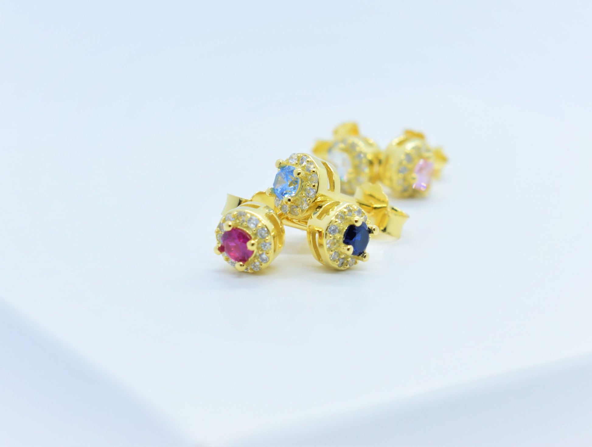 Gli orecchini a forma di cerchio zirconati con al centro pietra colorata in argento 925 sono eleganti e sofisticati.
